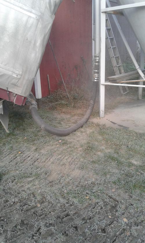 Monipuolisessa kalustossamme on mahdollisuus myös puhallustoimituksiin. Sen avulla vilja saadaan karjaa varten automaattiruokintakoneistoon kätevästi ja nopeasti.